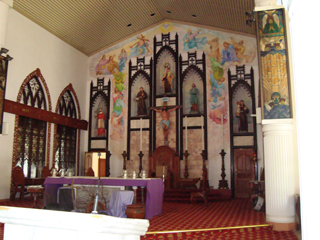 ツアーで回ったサイパンの教会です。ステンドグラスの窓がたくさんあってカラフルでした。神聖な空気が流れていました。