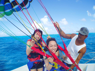 マニャガハ島でバナナボートをしました。 写真だと誰が誰だか区別がつきません。。。