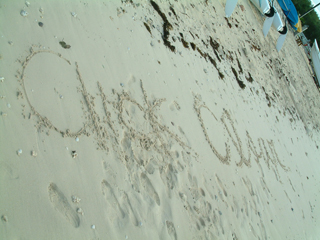 砂浜に書いてみましたが、撮影直後波に消されました。。。