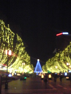 大通りの真ん中に大きなもみの木があり、かなりの存在感がありましたよ(^O^)その先を歩いて行くとキティちゃんが光ってました(^_^;)