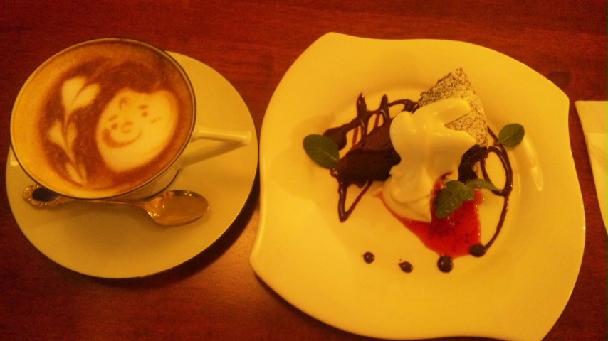柴崎の癒し系カフェAirのカフェラテ&ガトーショコラです。